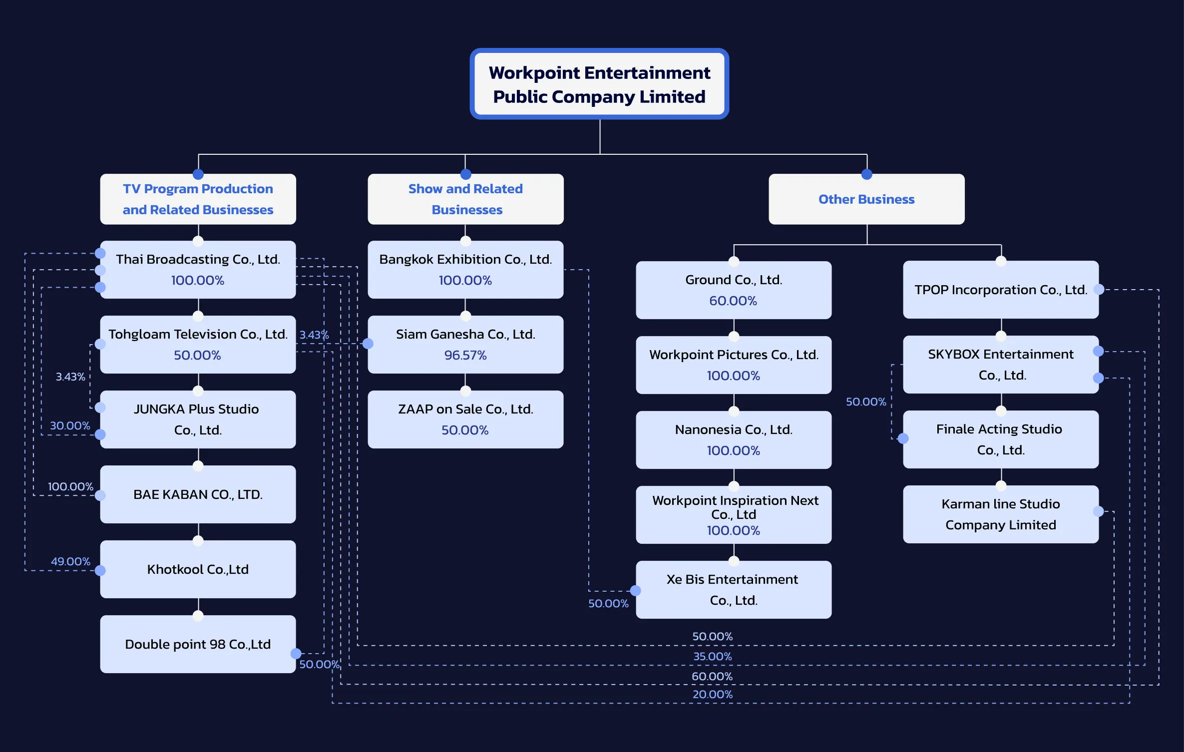 The Company has the policy of presenting TV programs by offering both knowledge and entertainment to TV audiences. Each program of the Company achieved success as guaranteed by various awards and consistent advertising sales until the Company has been accepted as a leading TV program producer and TV station of Thailand. Many awards given by local and foreign institutions also guarantee the Company’s success and quality of TV programs. This deems the Company’s great pride. The details of subsidiaries in the affiliates can be summarized as follows: