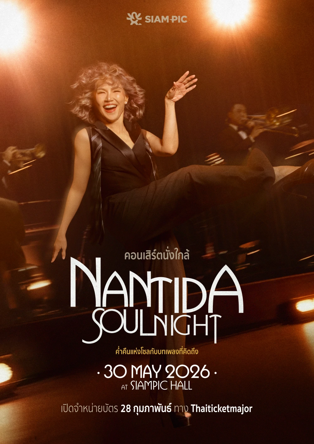 คอนเสิร์ตนั่งใกล้ NANTIDA SOUL NIGHT แสดงวันที่ 30 พฤษภาคม 2569 (เพียงรอบเดียว) ณ Siampic Hall บัตรราคา 3,800 / 3,500 / 3,300 / 3,000 / 2,500 และ 2,000 บาท เปิดจำหน่ายบัตรวันแรก 28 กุมภาพันธ์ 2569 เวลา 10.00 น. ทางไทยทิคเก็ตเมเจอร์ โทร. 02-262-3456