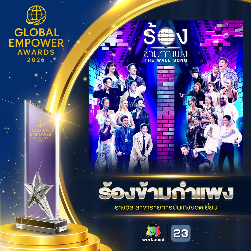 รายการ “ร้องข้ามกำแพง” จากช่องเวิร์คพอยท์ 23 สร้างความภาคภูมิใจอีกครั้ง กับการได้รับรางวัล สาขา “รายการบันเทิงยอดเยี่ยม” จากเวที Global Empower Awards 2026 เมื่อวันเสาร์ที่ 21 มีนาคม 2569 ที่ผ่านมา