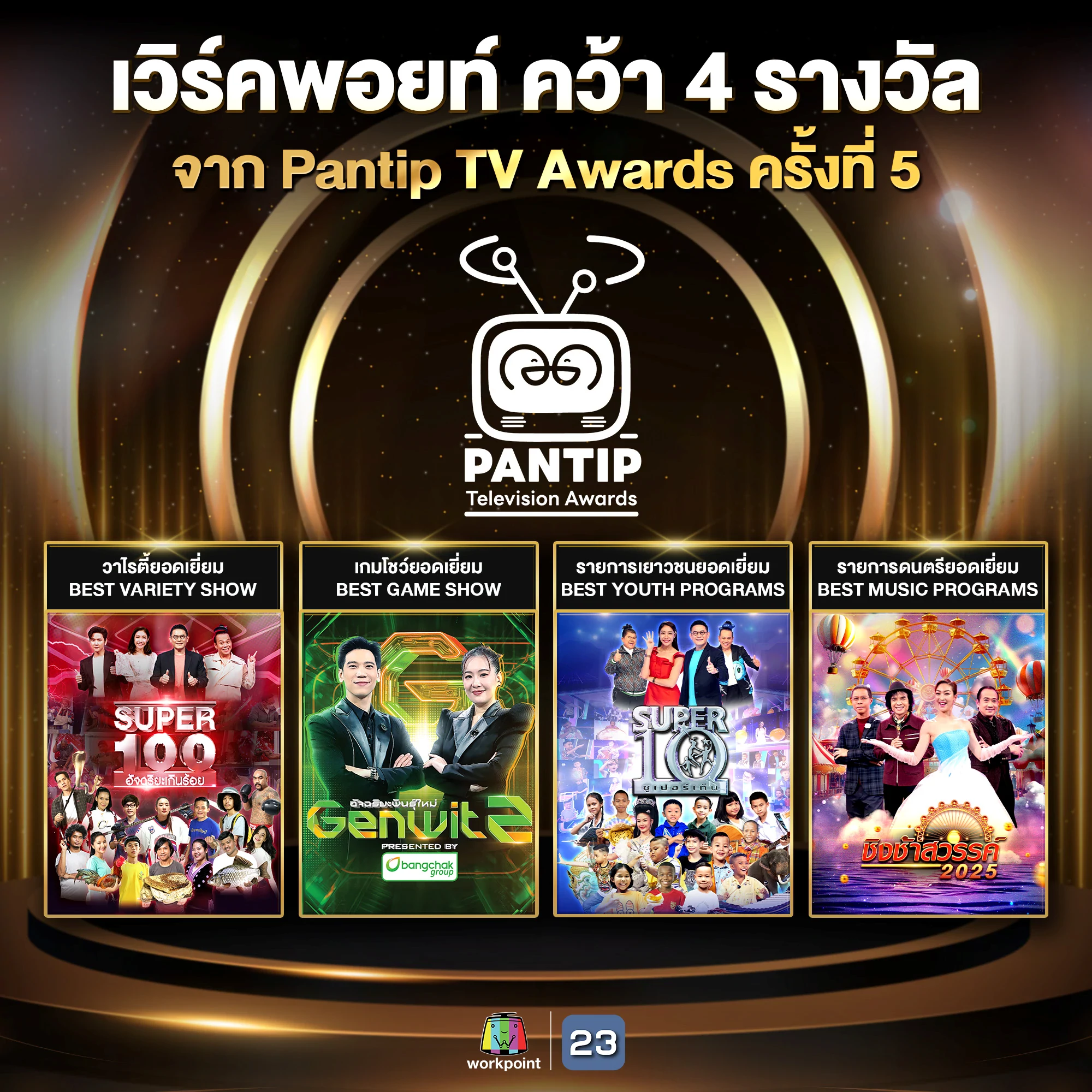 เวิร์คพอยท์คว้า 4 รางวัล จาก Pantip TV Awards ครั้งที่ 5