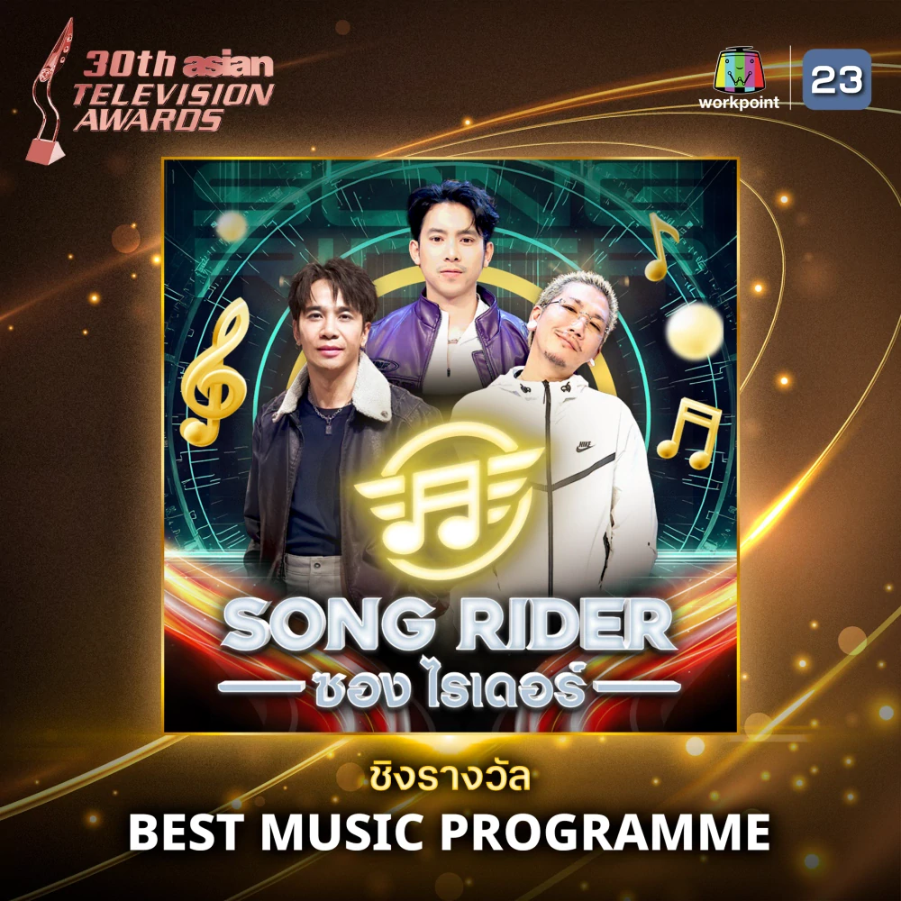 งานนี้ต้องบอกเลยว่ารายการ “Song Rider” จากช่องเวิร์คพอยท์23 ปังแบบไม่มีพัก! ล่าสุดเข้าชิงรางวัลสาขา Best Music Programme บนเวทีสุดยิ่งใหญ่ของภูมิภาคเอเชียแปซิฟิก Asian Television Awards 2025 ถือเป็นอีกหนึ่งข่าวดีที่ทำให้ทีมเวิร์คพอยท์ยิ้มแก้มปริ เพราะนี่คือเวทีระดับอินเตอร์ที่รวมสุดยอดผลงานโทรทัศน์จากทั่วทั้งเอเชียไว้ด้วยกัน!